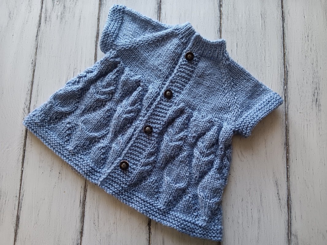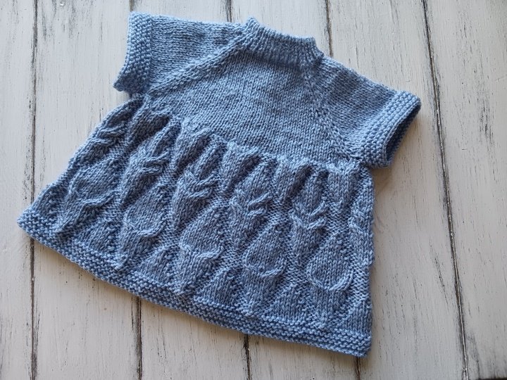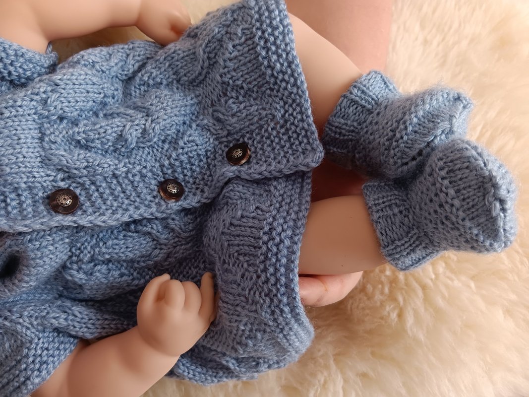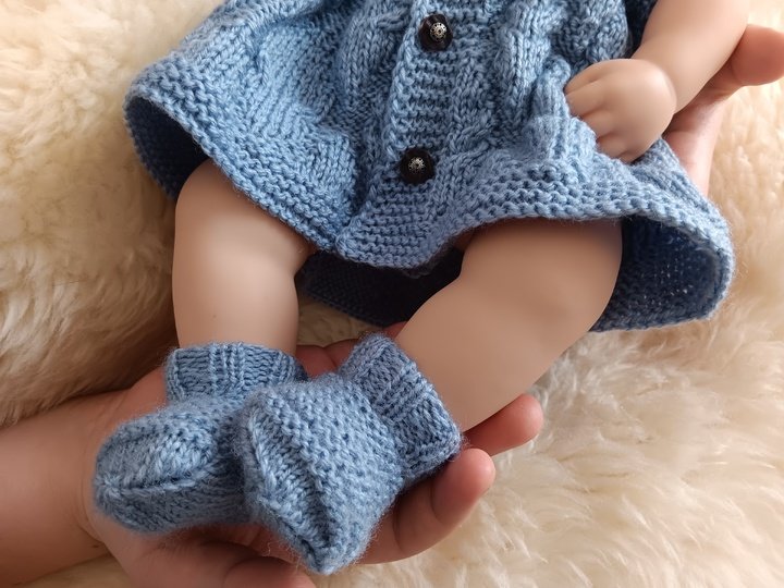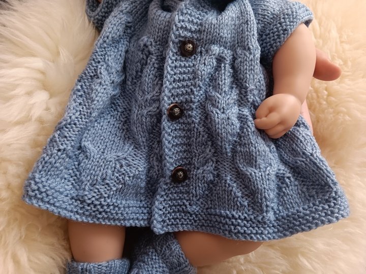 Knitting pattern for cute little baby dress to keep little preeemie warm in style. Easy to put on and off. Suits to preemies, tiny babies and also baby dolls 44-50 cm