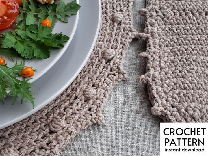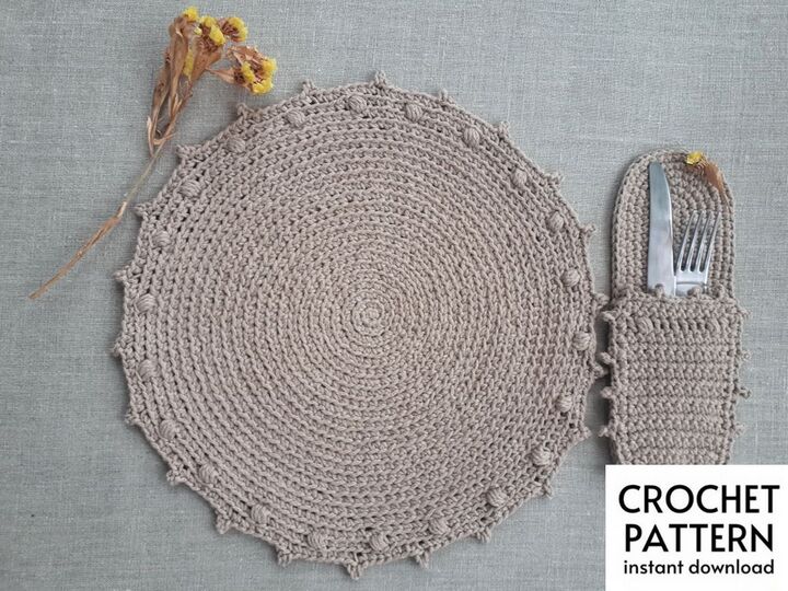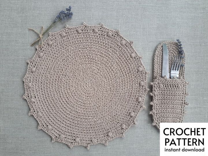 Table mat crochet pattern pdf is a great idea of table setting. Round cotton crochet placemat is easy to create. This kitchen set tablemat is a home decor in Rustic style. Placemat will protect your table of hot plates. It’s a wonderful gift for Easter, Valentine day, Wedding, Birthday, Mother's day for your friends and family.
