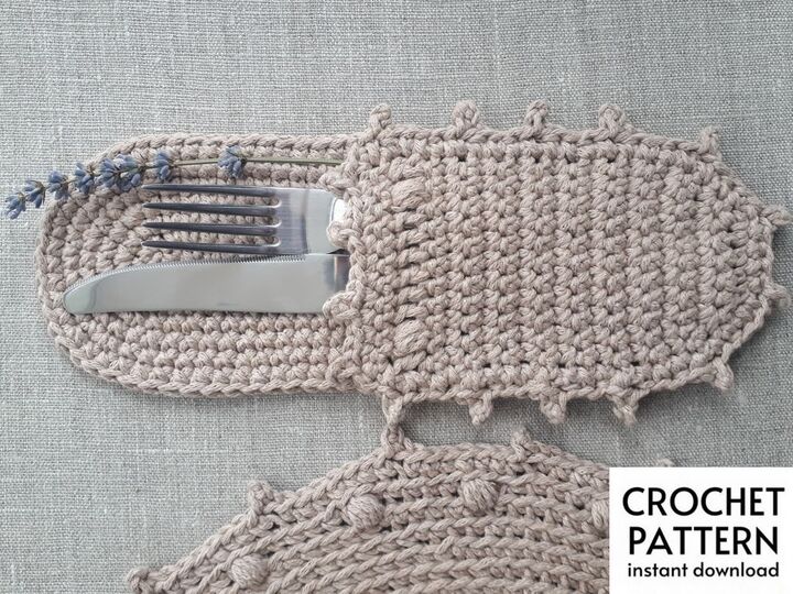 Cutlery holder crochet pattern pdf is a great idea of table setting. Silverware pocket is easy to create. It’s a part of the kitchen set as a home decor in Rustic style. Silverware holder will protect your table of scratches. It’s a wonderful gift for Easter, Valentine day, Wedding, Birthday, Mother's day for your friends and family.
