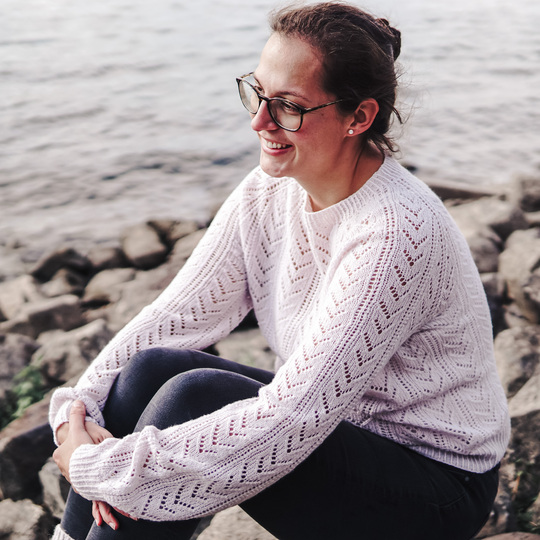Serena's lacesweater is a bottom-up raglan sweater. First work the body and sleeves separately in rounds before joining all the pieces together and shaping the yoke to the neckline by raglan decreases. The neckline is close-fitting and simple.