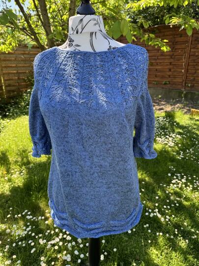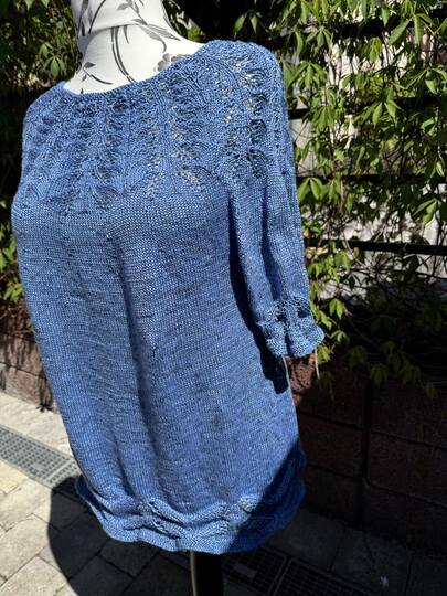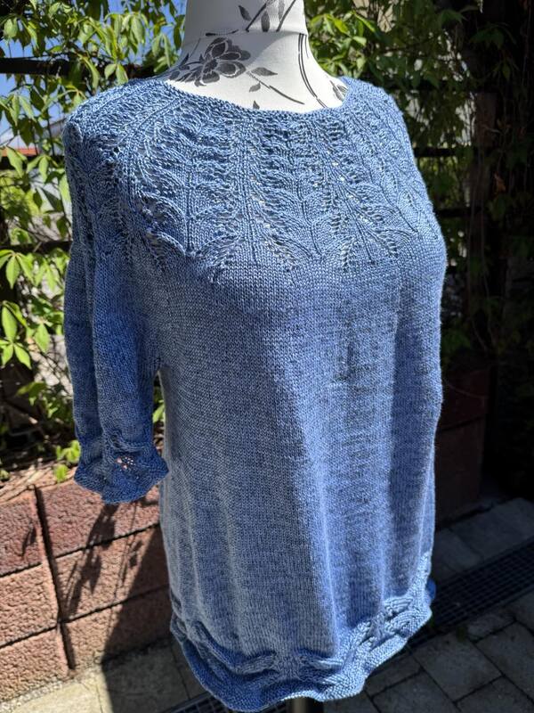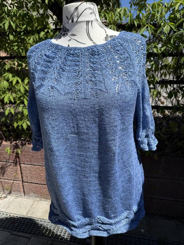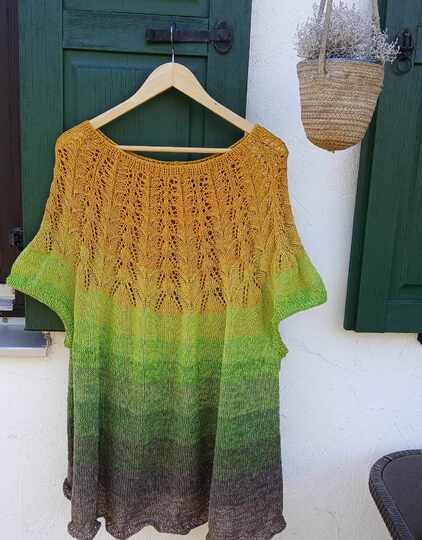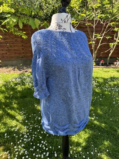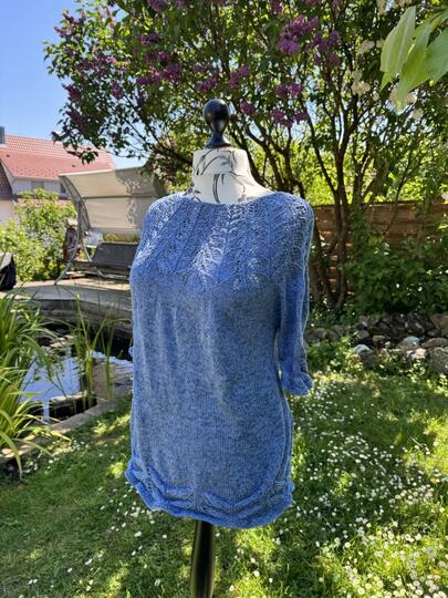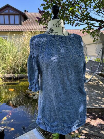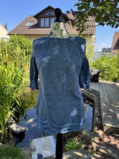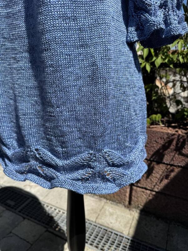Das schöne an dieser Strickart ist, das es für alle Größen geeignet und auch erweiterbar ist. So ist aus meiner Idee nicht nur ein Shirt entstanden sondern auch ein schlichtes aber absolut ausgangsfähiges Sommerkleid!