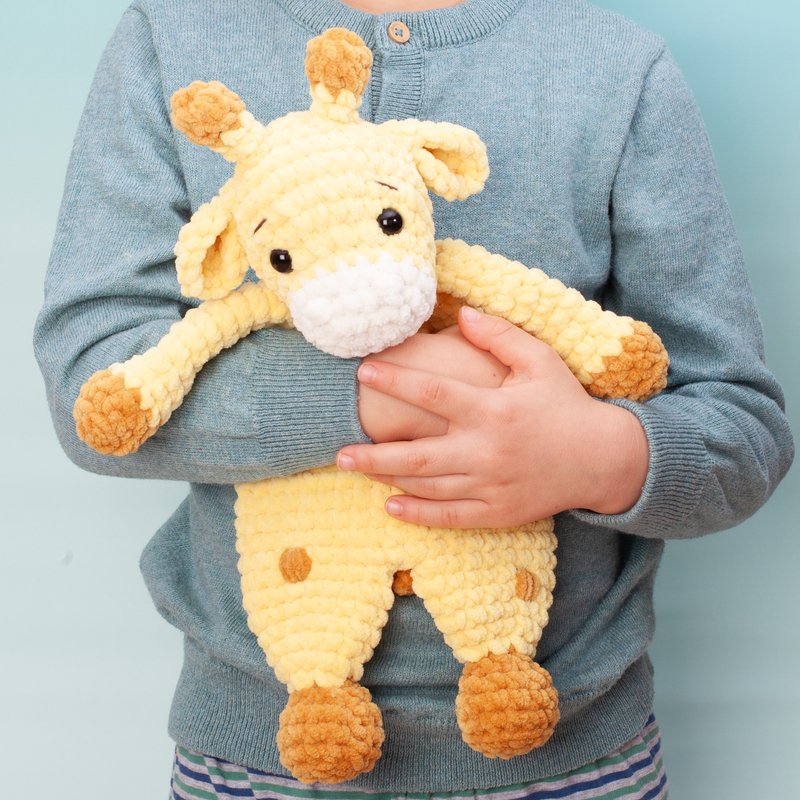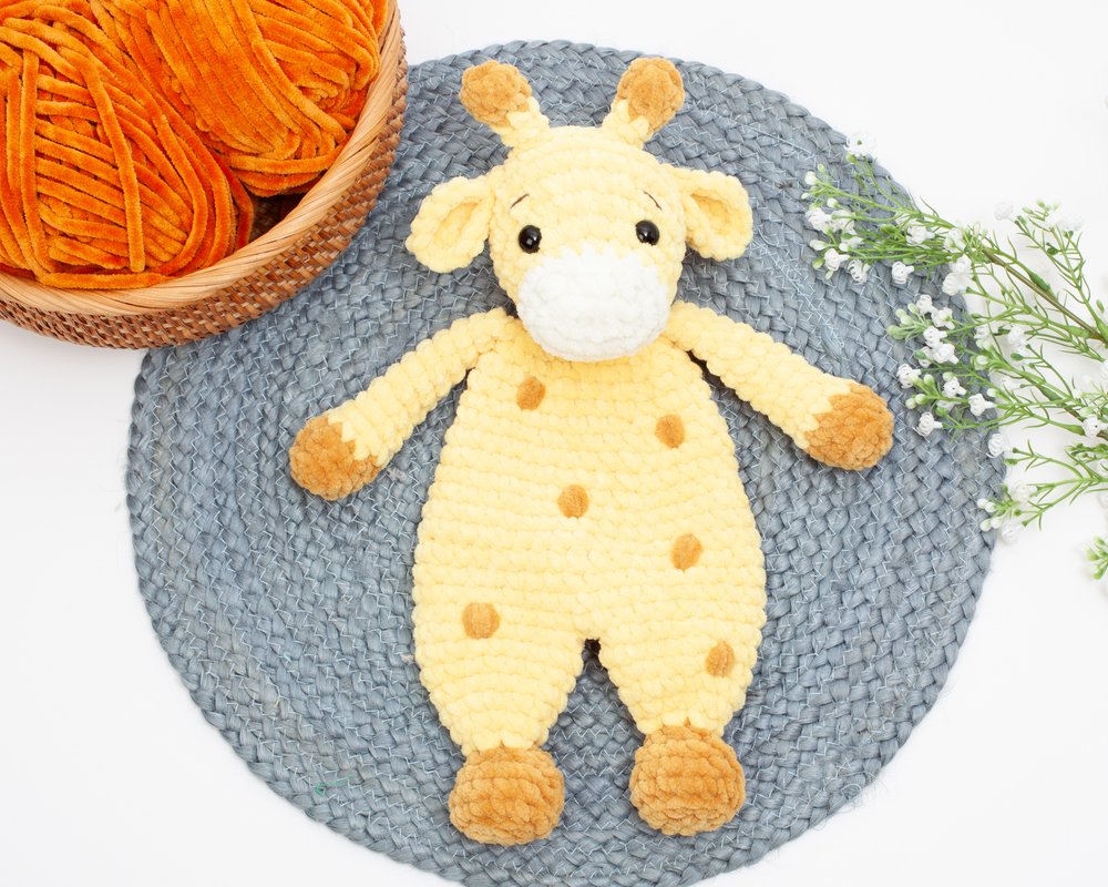 Create your own cute and cuddly giraffe lovey with this cute crochet pattern!
