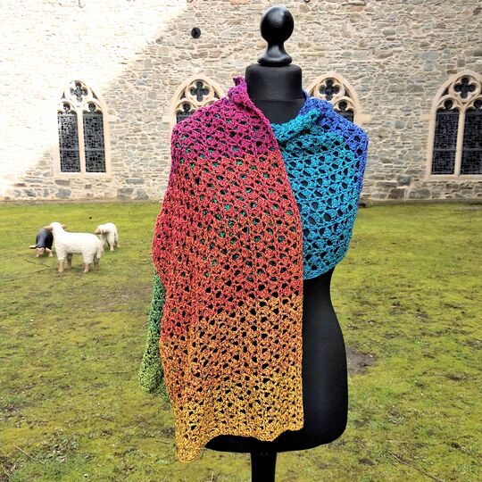You can crochet the rectangular shape in any desired size, as a stole or a scarf. This pattern includes detailed additional instructions, making it easy to change the size or deciding the correct amount of yarn to buy for your desired project.