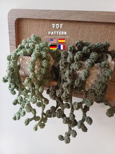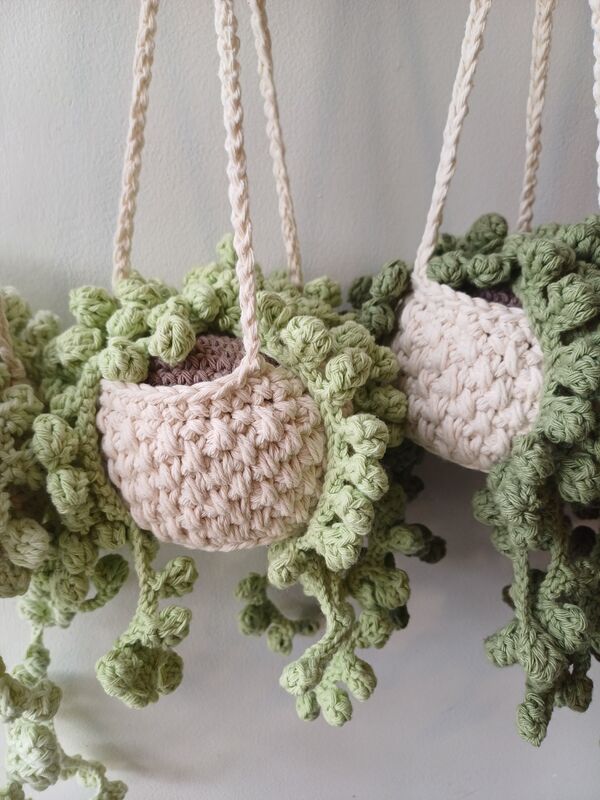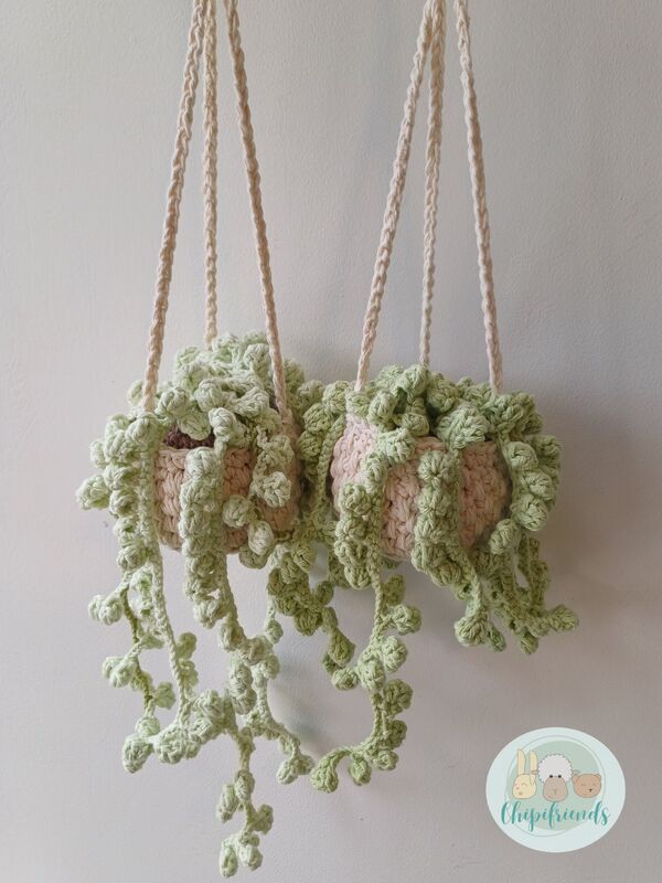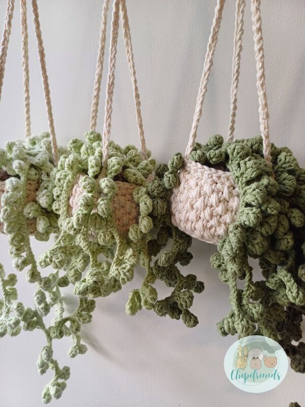 With this pattern you can make some divine hanging string of pearls baskets wich are perfect for decorating and bringing life to your home, cars, or offices!