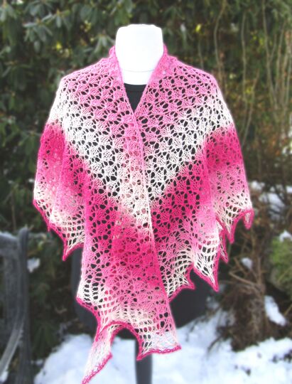 The size of the shawl can be adapted easily and it can be knit with any yarn and any size.