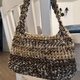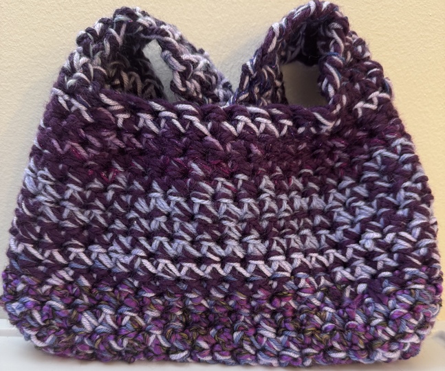 This entire bags is worked with no stitching. The handles are added on each side after and then ss together to close.