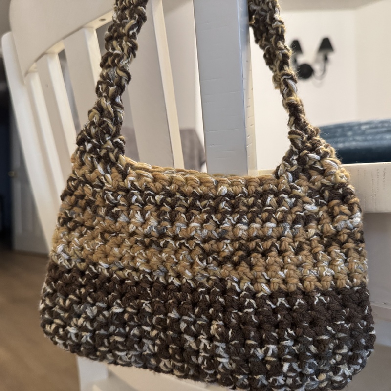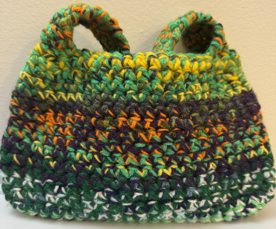 I was inspired to write a pattern for this crochet mini scrap handbag as I was getting ready for my first pop-up shop of the season.