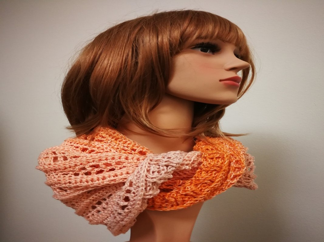 Ein schicker Loop mit hübschem Wellenmuster.Dieses wird eingerahmt von Reliefrippen und wirkt somit sehr elegant und sportlich zugleich.Je nachdem welche Wolle gewählt wird kann man sich den Loop für jede Jahreszeit häkeln.