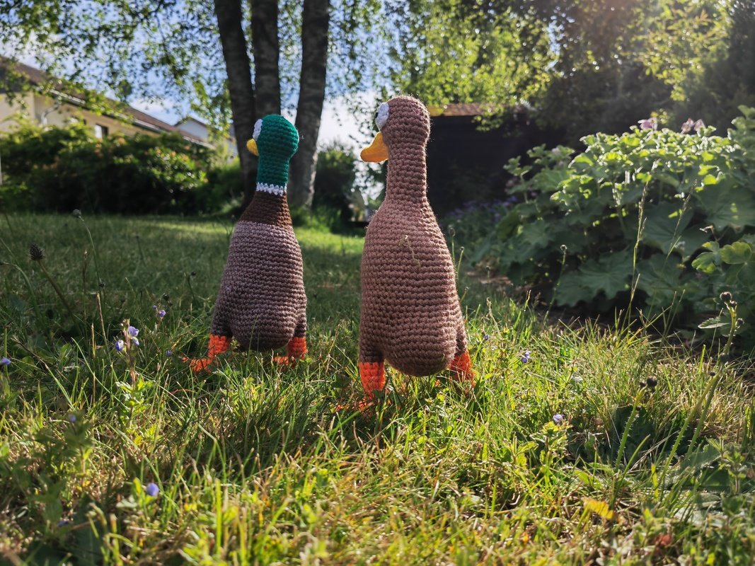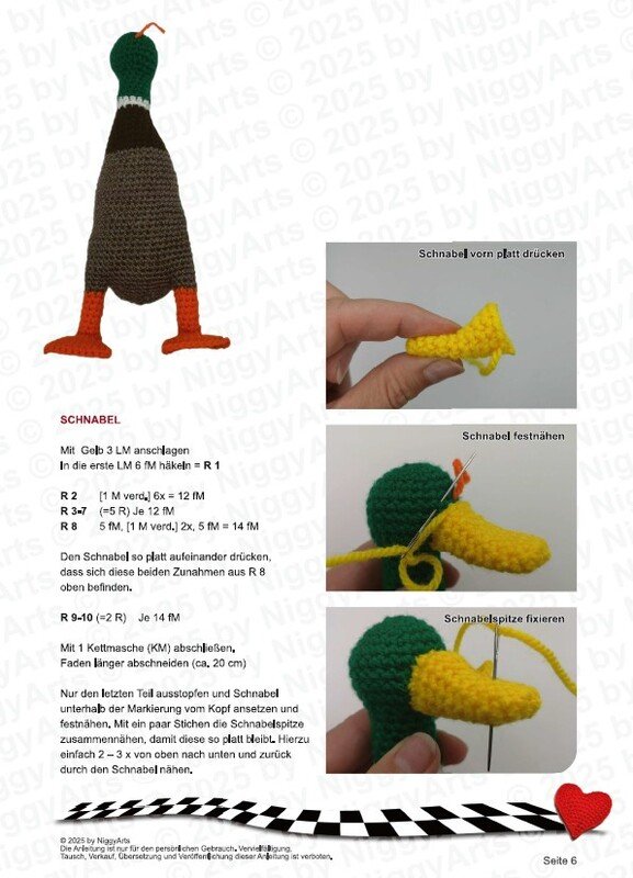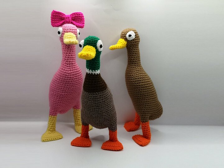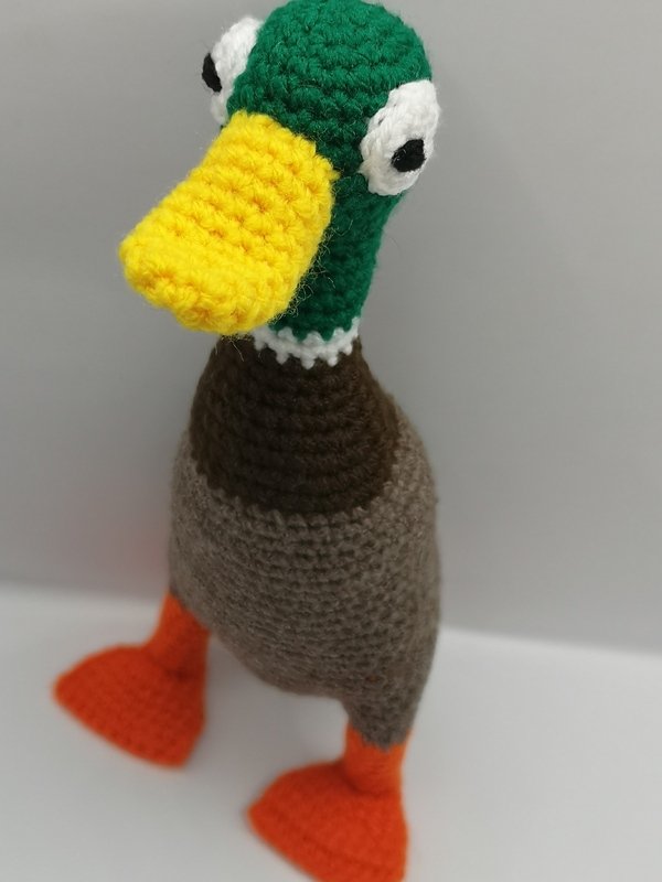 Don't these runner ducks look funny? With this crochet pattern, you can easily create your own runner duck. Whether classic in natural tones or more unusual in bright colors. Adorned with a ribbon, it looks especially funny. The instructions for that are of course also included in the pattern. The runner duck is crocheted in one piece, without any sewing together. In the end, only the details (eyes and beak) are sewn on. Additionally, a video (in german) is included with some tips and aids for the instructions. So it should really be easy to crochet this duck.