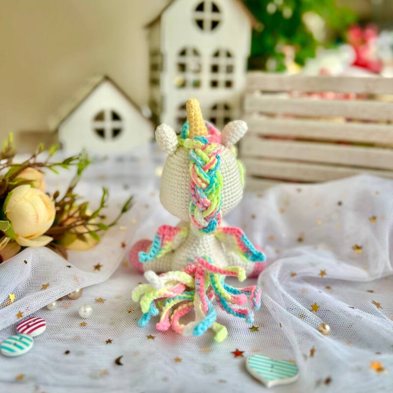 This is a digital crochet pattern to create Ivy – a cute, small unicorn full of character. You can crochet a finished toy that’s perfect as a handmade gift, room decoration, or collectible fantasy figure. The instructions are written in English (US terms) and include helpful step-by-step photos.