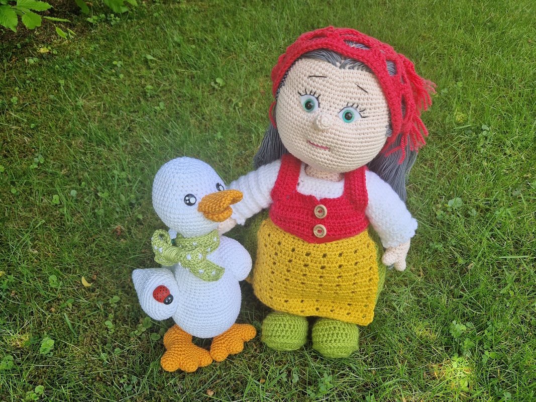 Bringe den Sommer in dein Zuhause mit der Häkelanleitung für das Gänselieschen! Diese entzückende Amigurumi-Puppe wird mit ihrer charmanten Kleidung und dem fröhlichen Gustav Gans jeden Raum aufhellen.