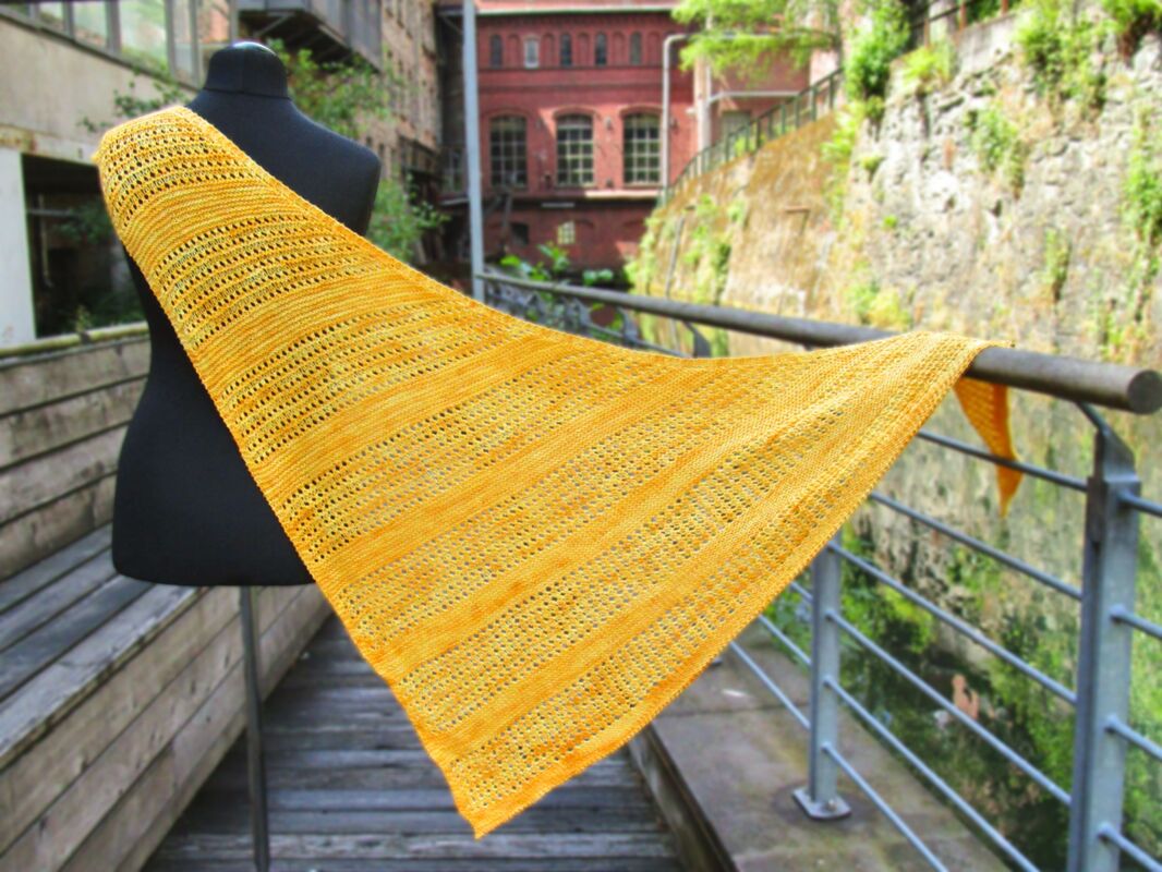 The Lunda shawl can be knit in any desired size. It is also suitable for sock yarn.
