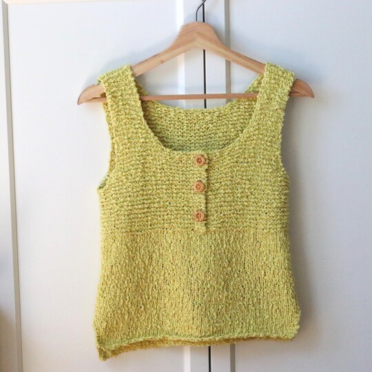 The NAMI Top is a breezy summer project – ideal for everyone looking to knit a quick top that’s easy to combine: whether worn solo on hot days or layered casually over a blouse.