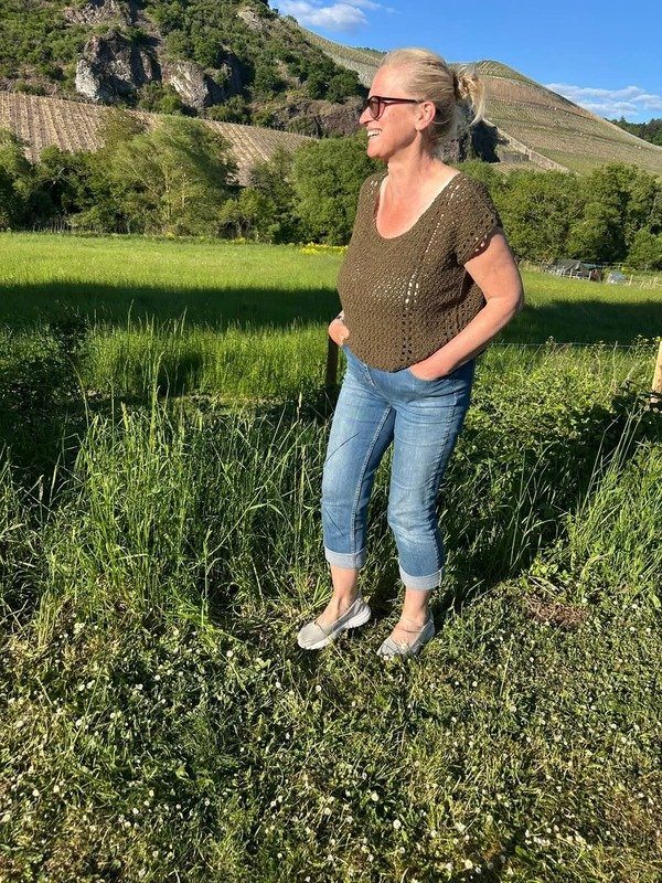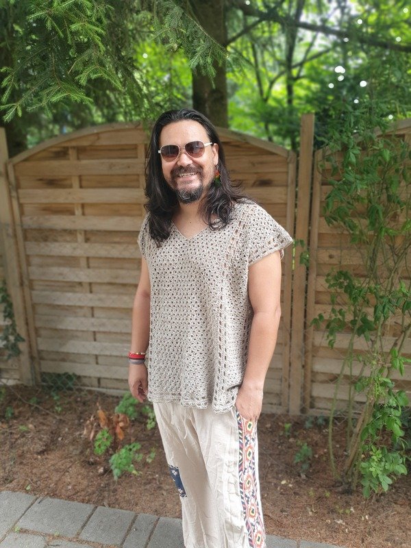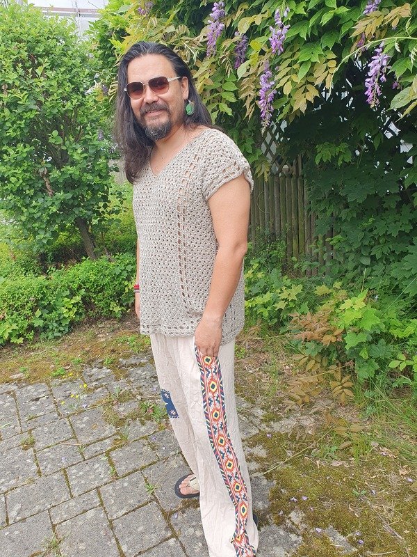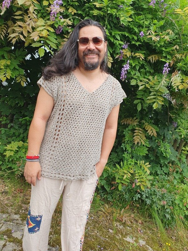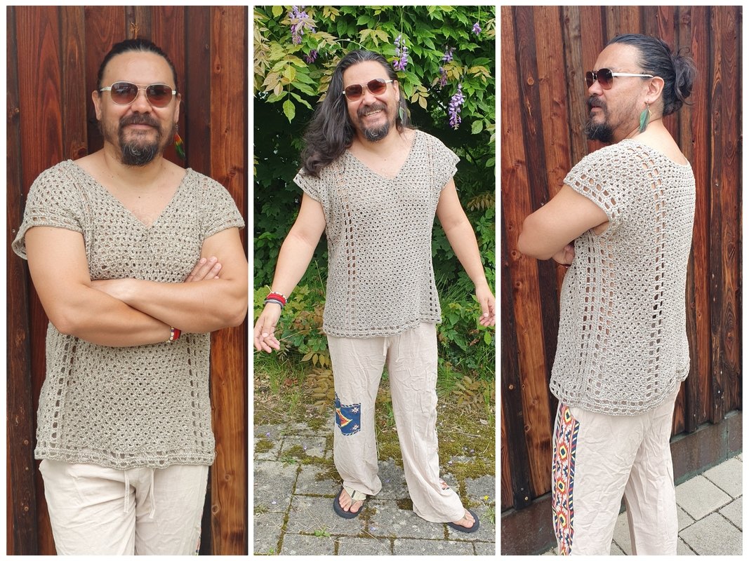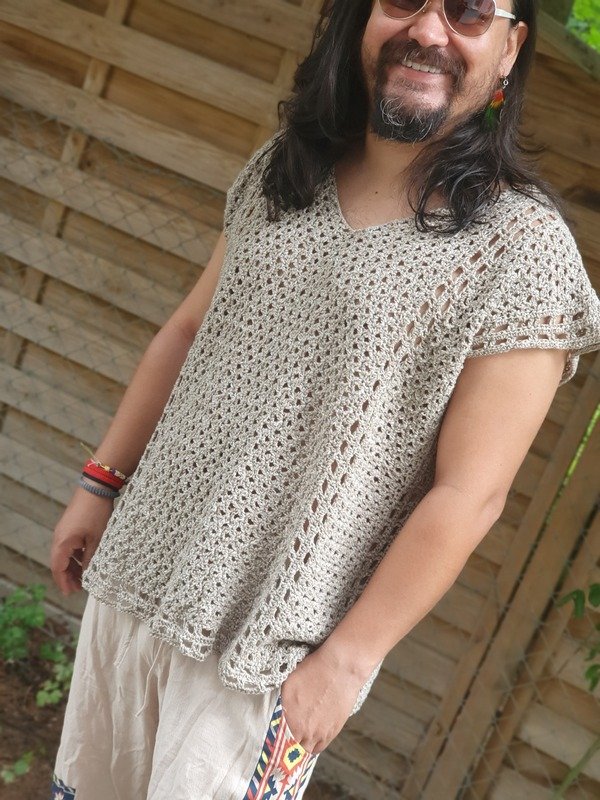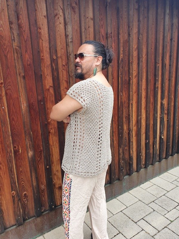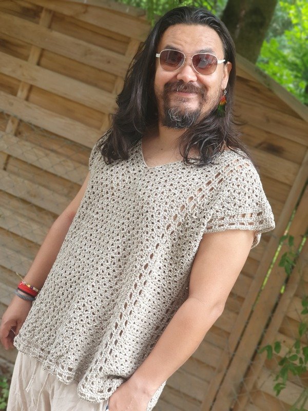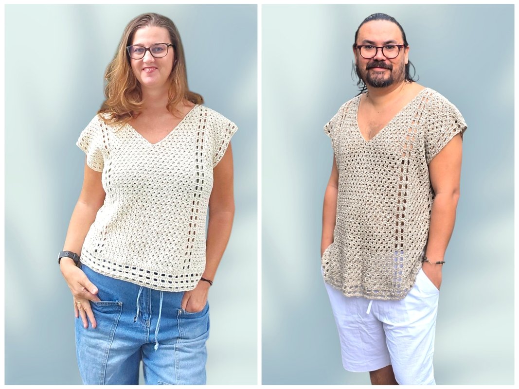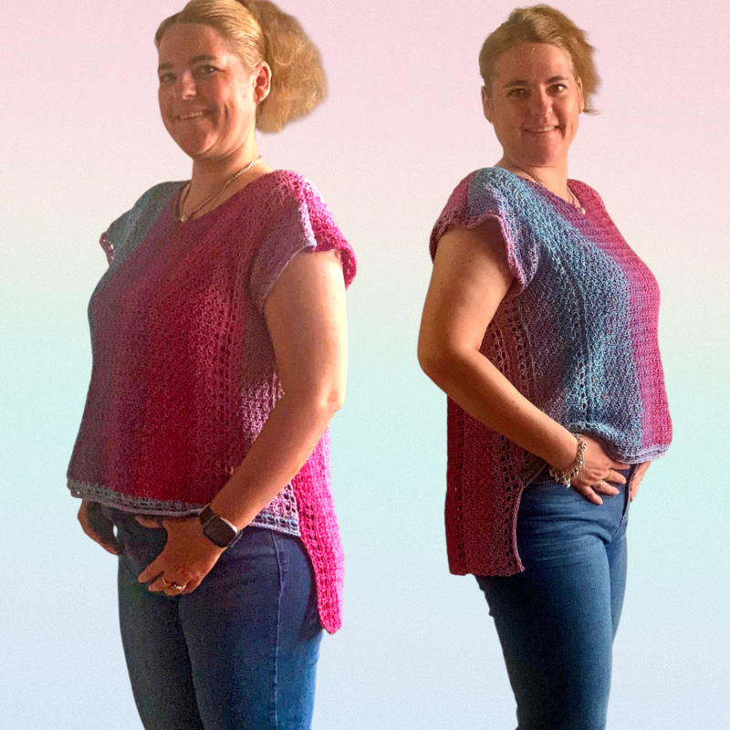 Ob für Damen, Herren oder alle dazwischen – Gender ist ein lässiges, vielseitig häkelbares Shirt, das du ganz individuell anpassen kannst. Du häkelst von Schulter zu Schulter, also seitlich, was eine ganz besondere Wirkung ergibt – besonders bei Farbverlaufsgarn ein echter Hingucker!