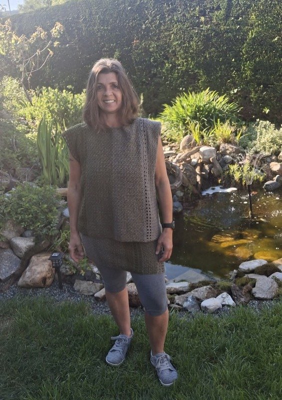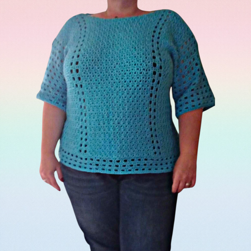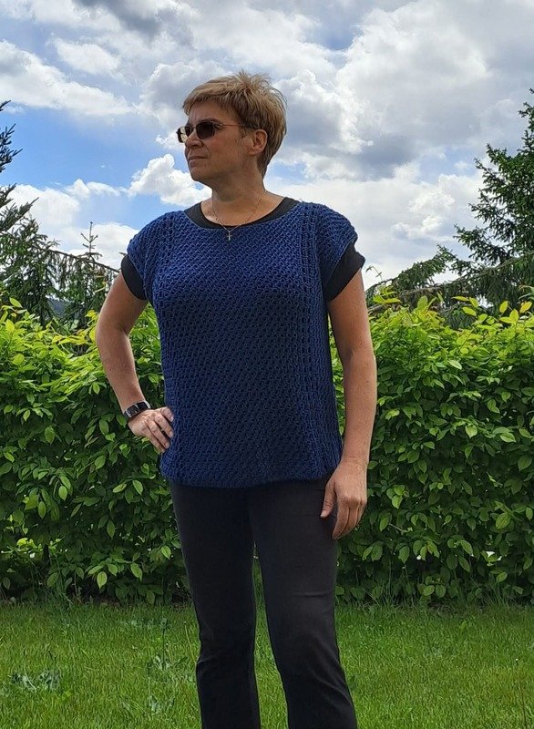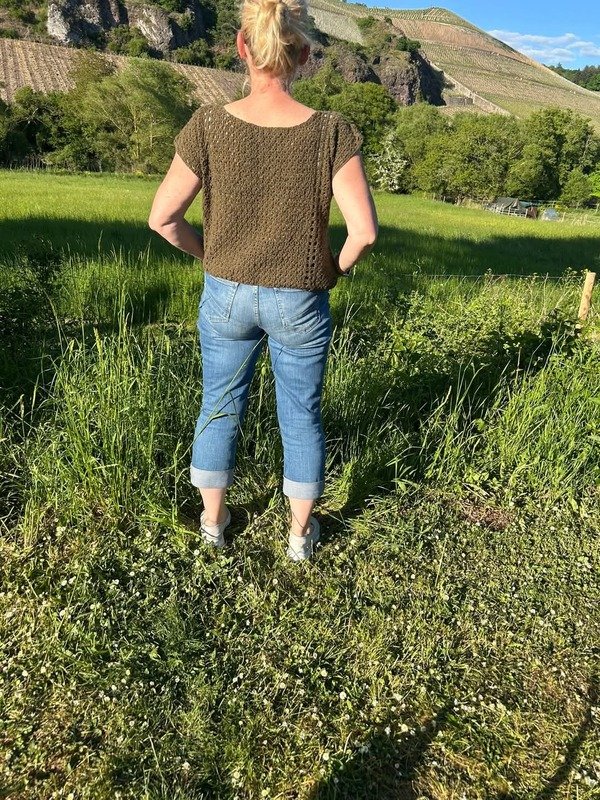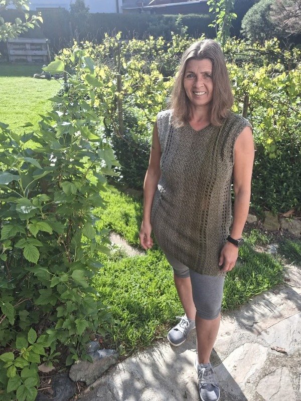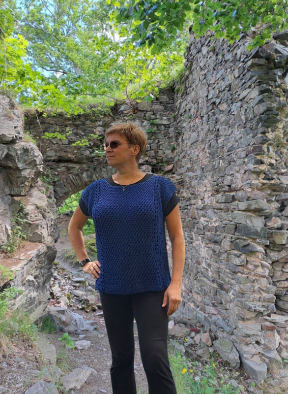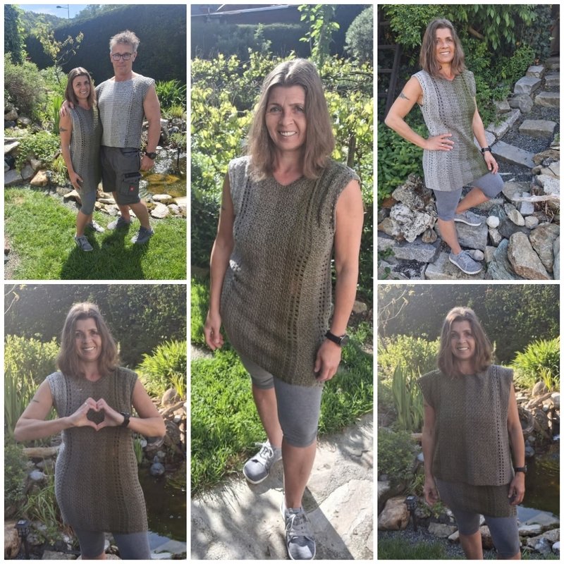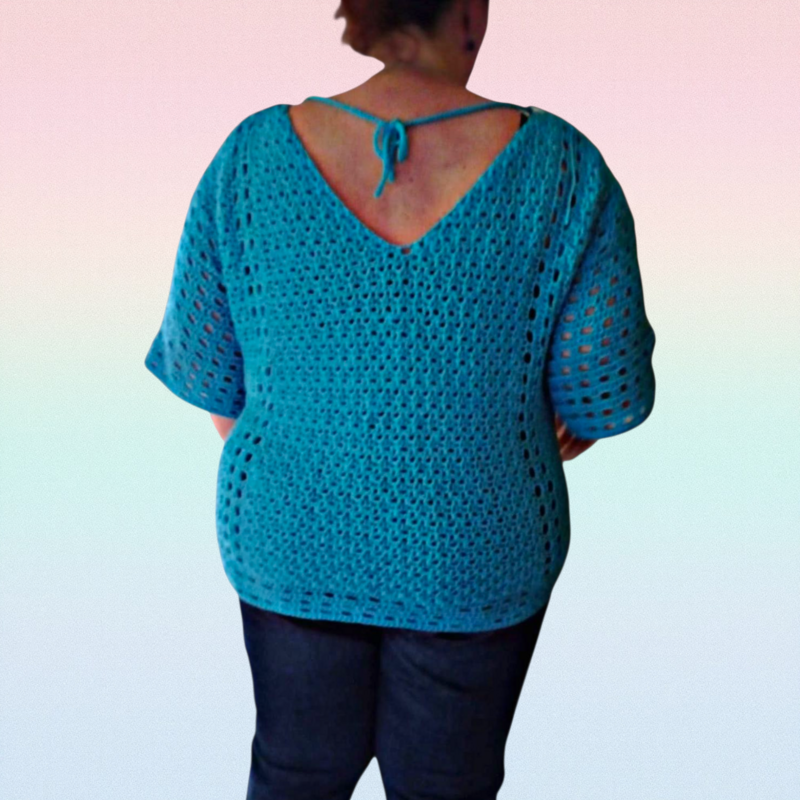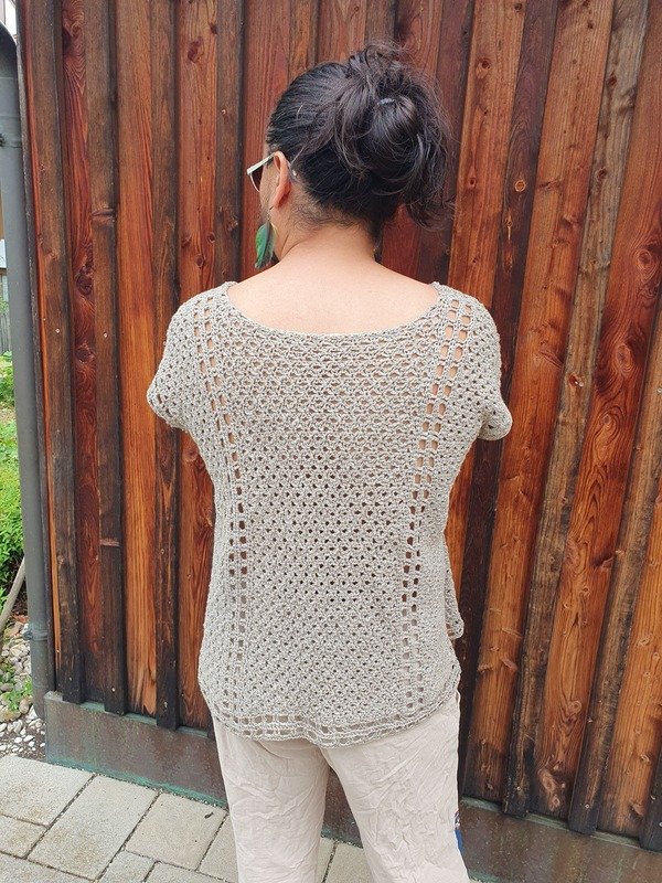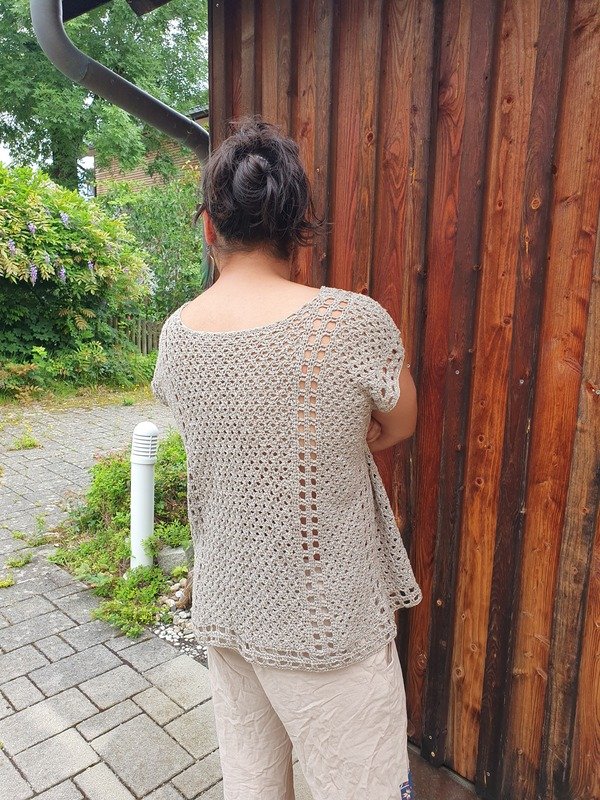 Du häkelst zwei einfache Rechtecke (Vorder- und Rückenteil) und verbindest sie am Ende.