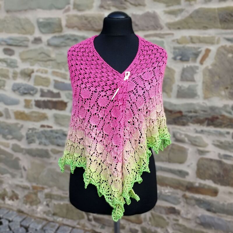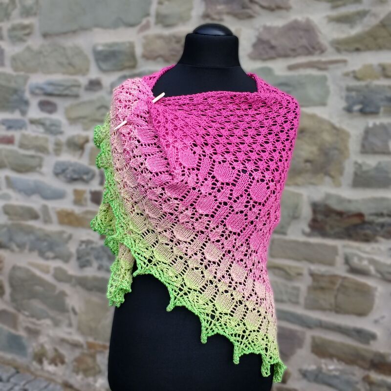 You can adjust the shawl to any size and knit one or more rows of tulips. You can choose to make it just the way you like it.