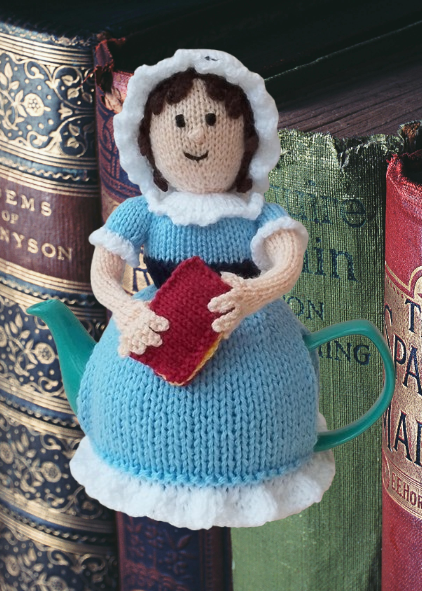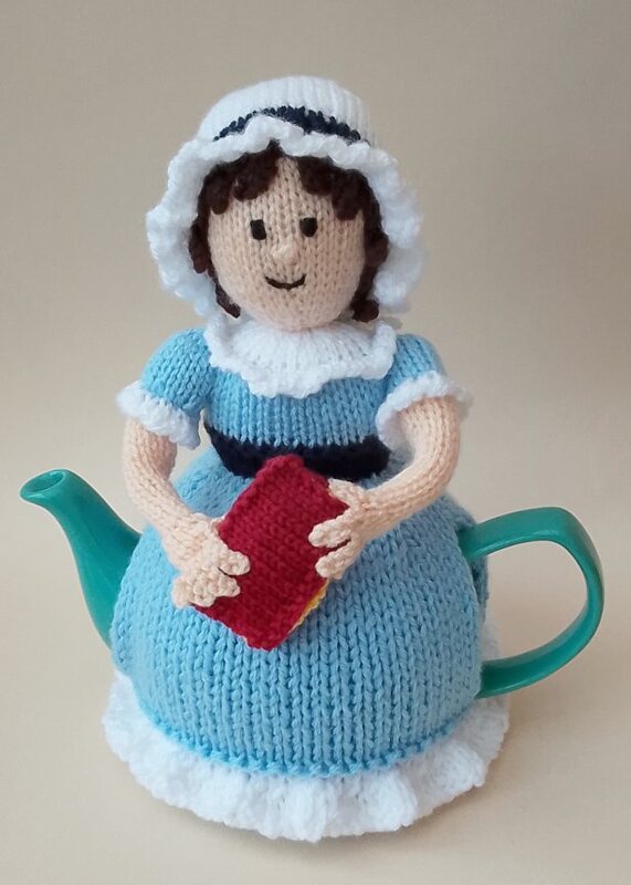 This product is the knitting pattern only; to knit your own Jane Austen tea cosy.