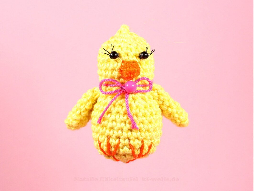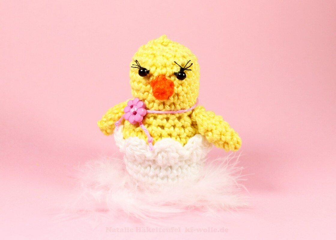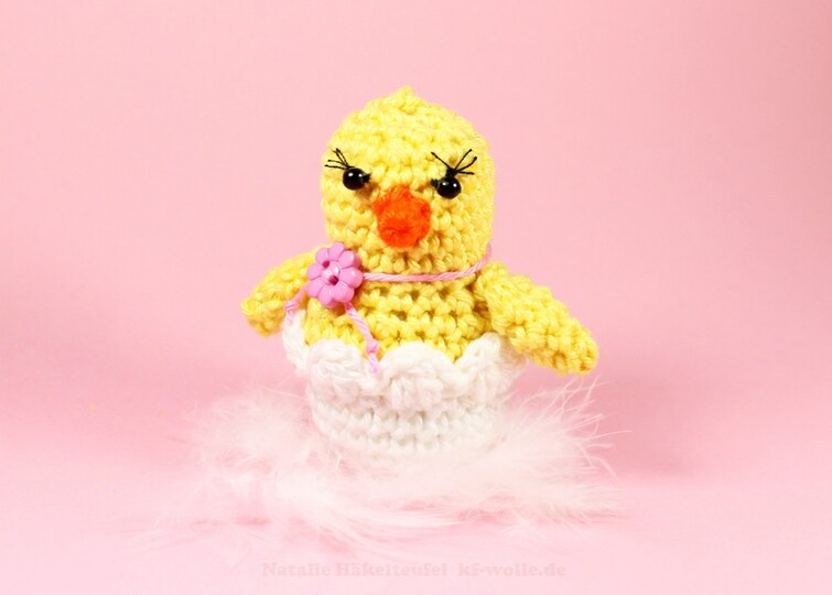 The extensive, richly illustrated PDF crochet pattern for crocheting a key ring (pendant) "chick" ("chick in an egg") to decorate the house or as a gift for friends. The chick can also be used as a key ring or pendant for your bag.