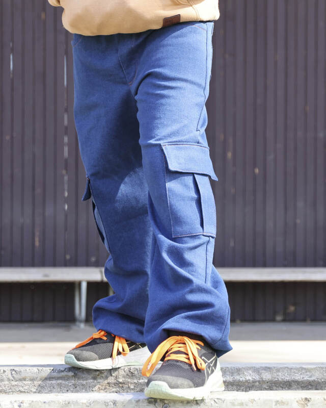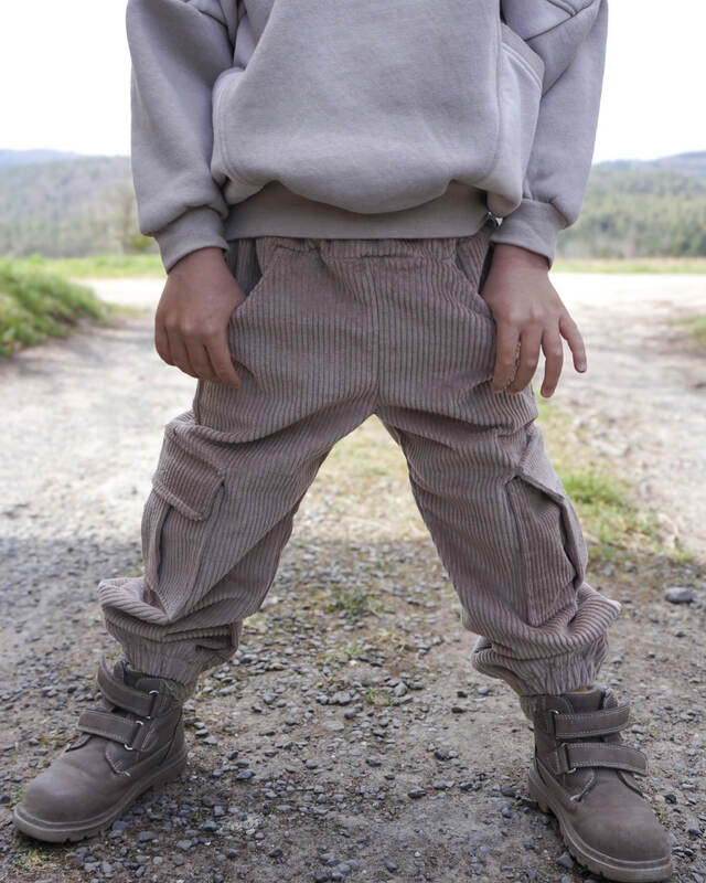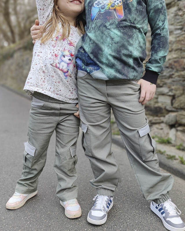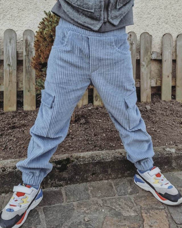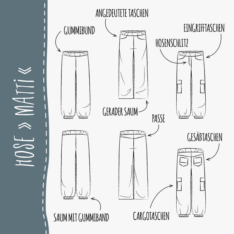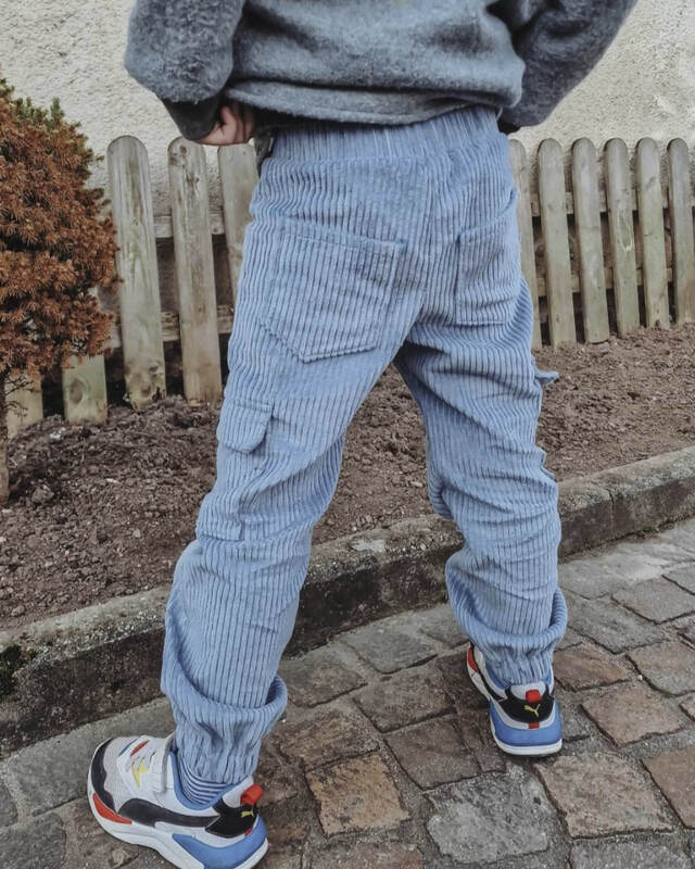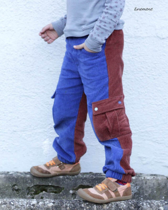 Das Schnittmuster ist ausgelegt für feste Stoffe mit Elasthananteil wie Stretch-Cord, Stretch-Jeans oder Twill – für eine bequeme, aber formstabile Hose. Auch nicht elastische Stoffe sind möglich.