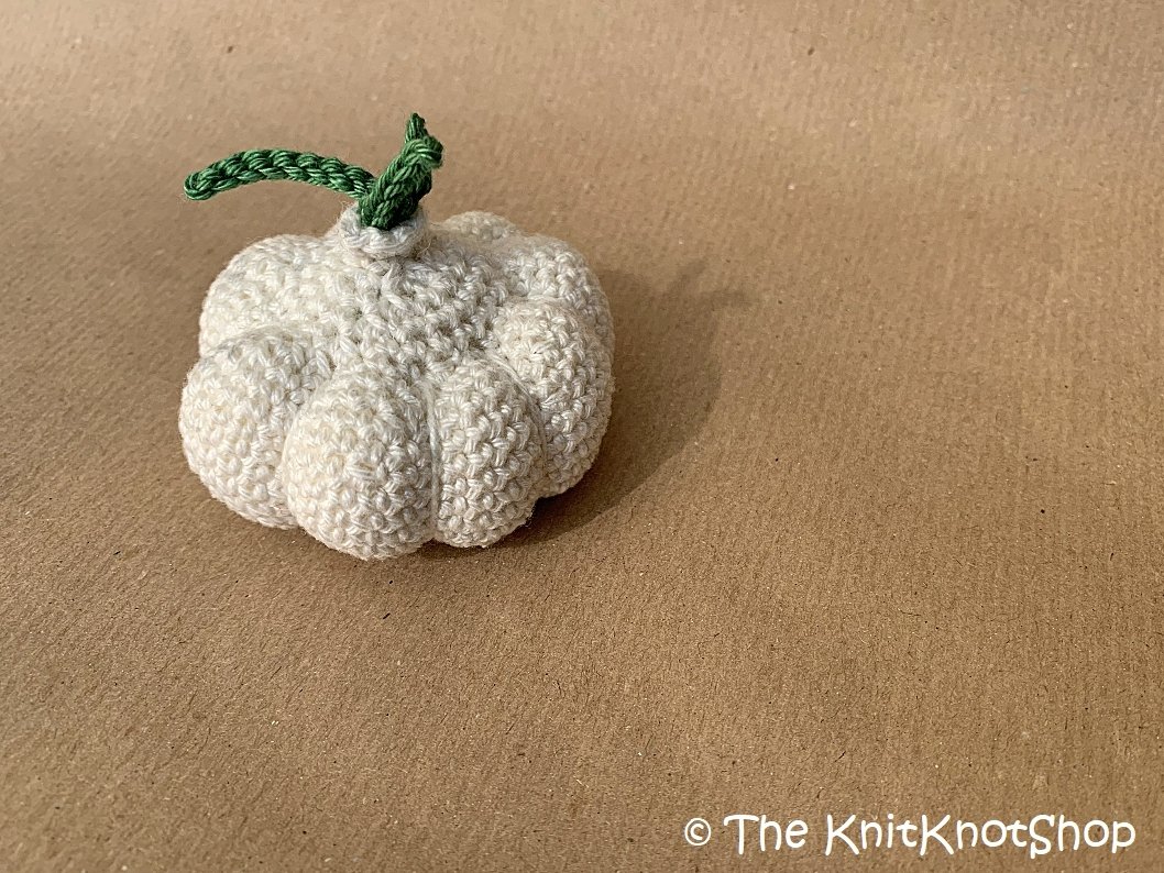 You will need the following material: Crochet hook size 3 mm, wool with approx. 125 m/50g running length in white, beige and green, cotton wool for the filling, needle for sewing the threads