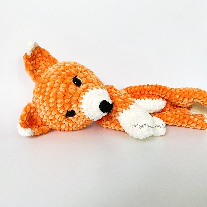 I use Chenille - 100gr/roll - and 4.5mm crochet hook: The Fox Snuggler is 40 cm length