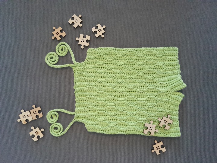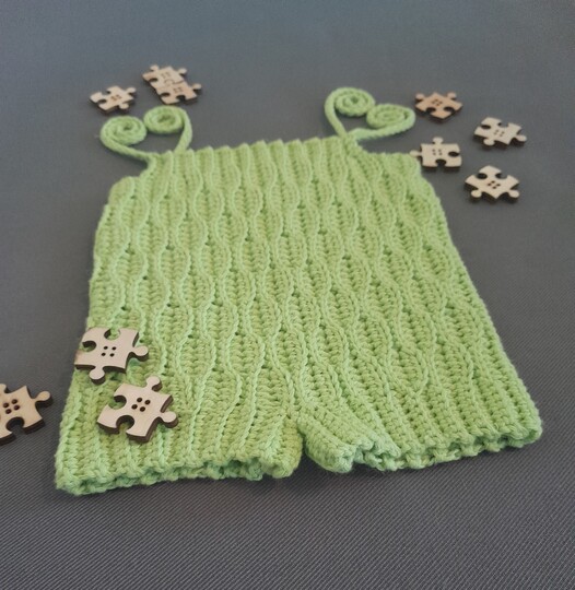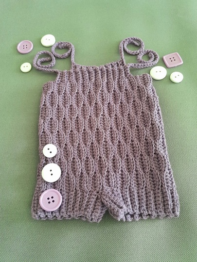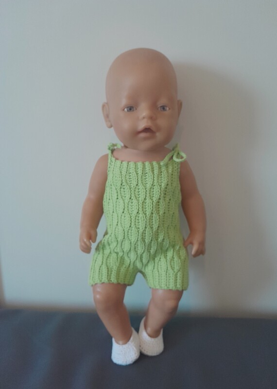 Häkelanleitung für einen Kurzoverall für eine Puppe, die 42 - 44 cm groß ist