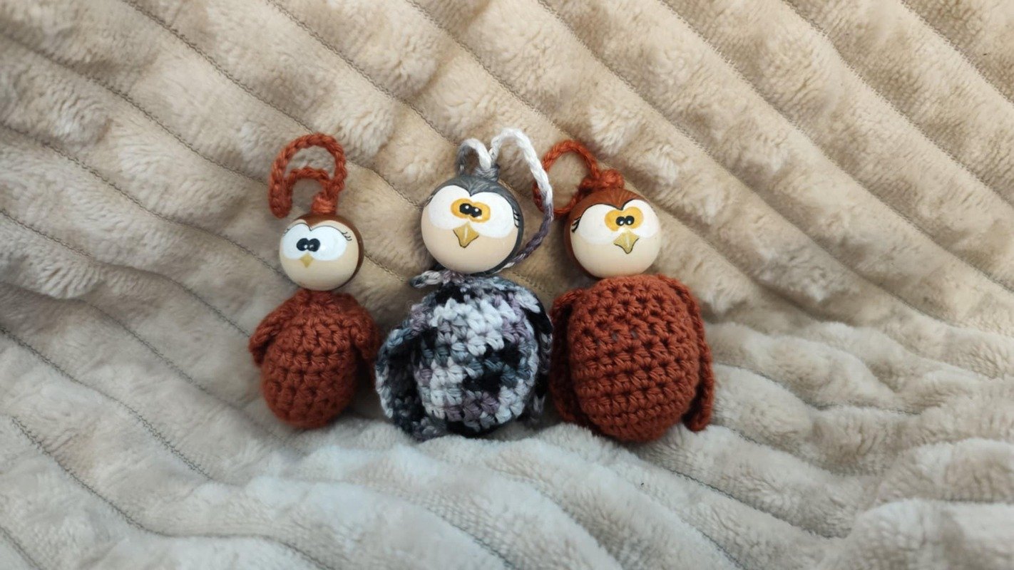Depending on the yarn and crochet hook, the owls will be between 6-12 cm high.
