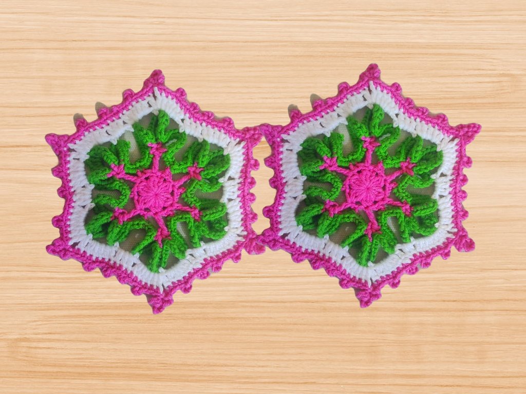 Crochet hexagon motif Pattern includes pictures for every step, gauge, stitch count and extra notes to help explain.