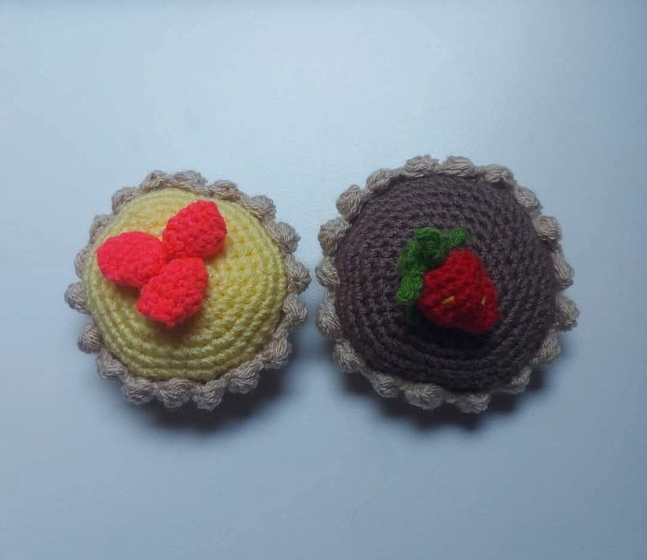 With this step by step crochet pattern you can easily crochet a chocolate or lemon tarte.