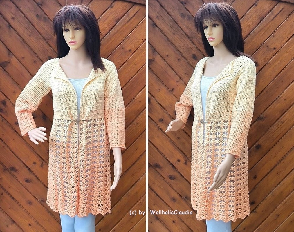 Die Anleitung ist wie immer schriftlich und natürlich sind auch die nötigen Häkelschriften dabei. Die Jacke ist in jeder Größe und Länge machbar. Alle Maße können individuell angepasst werden.