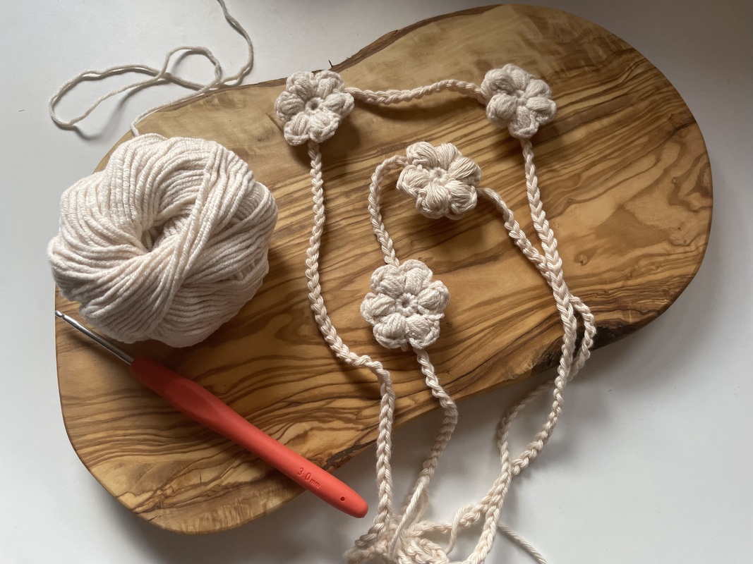 Außerdem musst du mit Büschelmaschen häkeln, die für die Blüten benötigt werden. Diese wird aber Schritt-für-Schritt in der Anleitung mit Bild und Text erklärt.