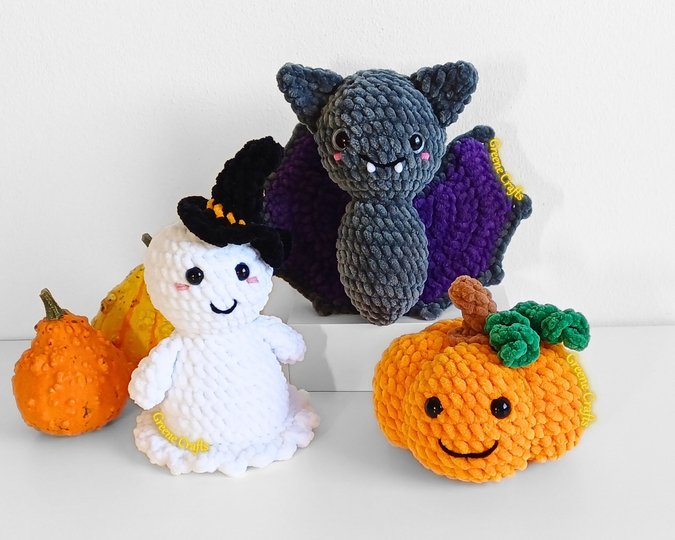 Check out our Mini Halloween Trio too! https://www.crazypatterns.net/en/items/104270/crochet-halloween-trio-mini-ghost-pumpkin-and-mini-bat-plush-toy-pattern
