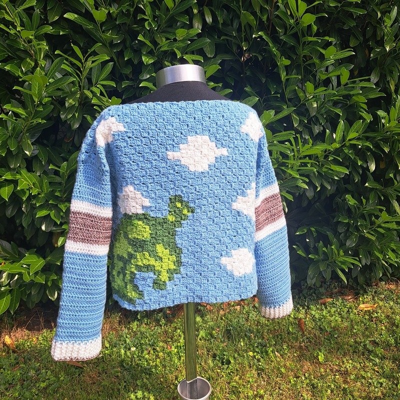 The front and back of the sweater are worked using the c2c technique. For both pieces, start in the left/bottom corner and work towards the right/top. (Appendix: c2c technique explanation).
