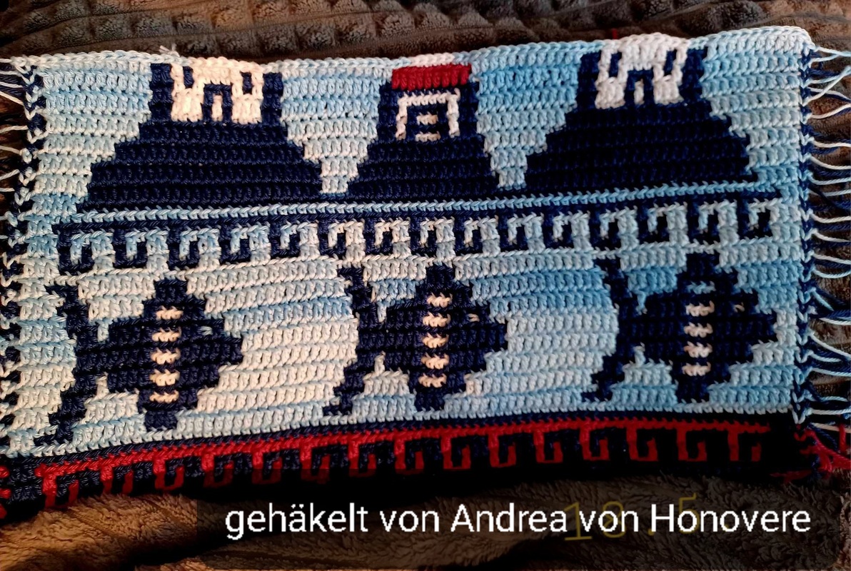 Bilder, Texte und Häkelschriften sind Eigentum von wolle-macht-gluecklich und dürfen weder kopiert, getauscht oder weitergeleitet werden (auch nicht auszugsweise).