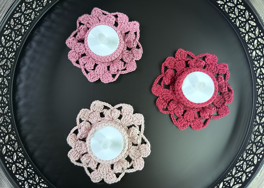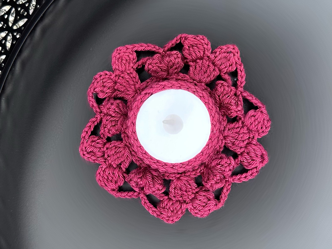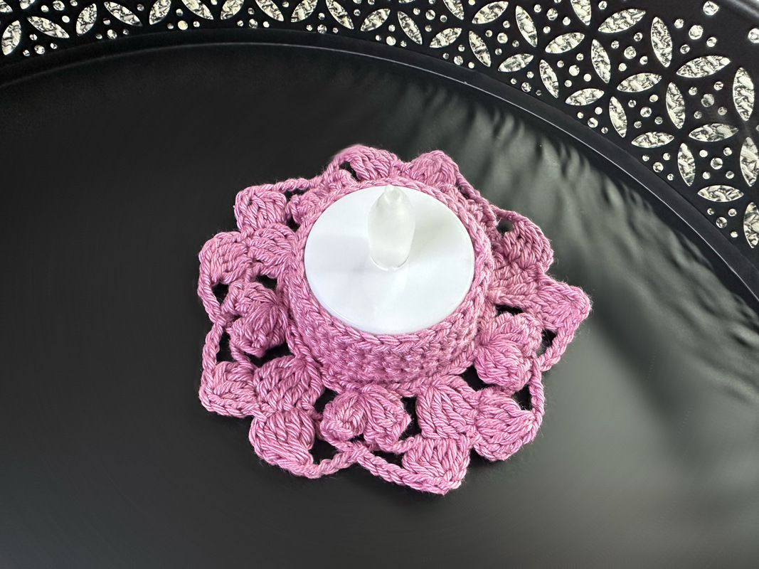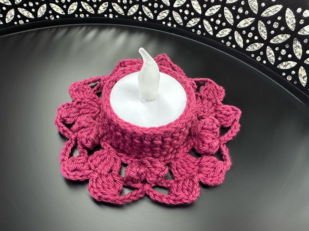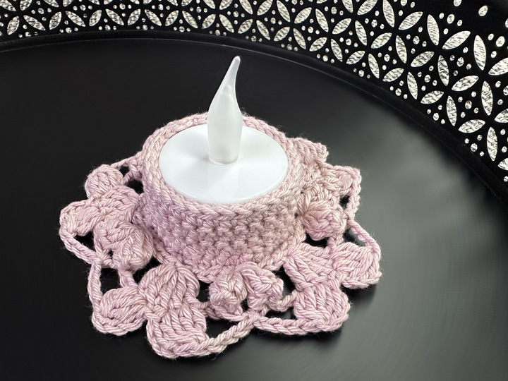 Bring warmth and charm to your home with this original crochet pattern for a handmade candle holder designed specifically for LED tealights. A perfect little project for seasonal décor or gift-making.