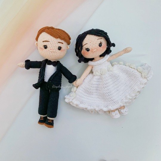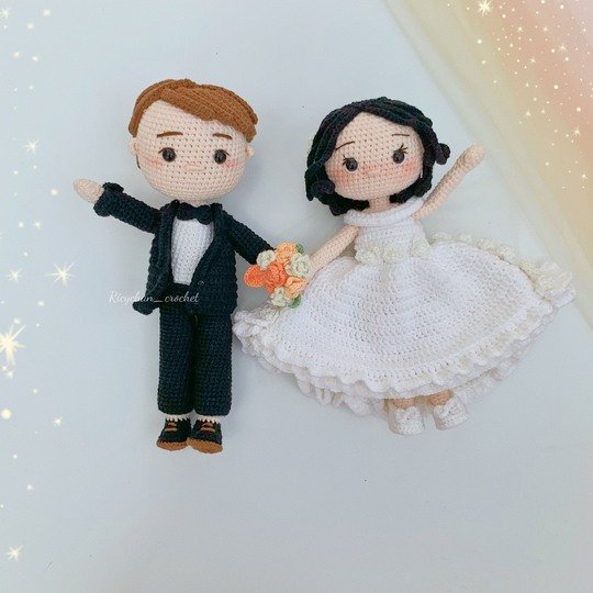 Groom bride crochet pattern was requested by a German customer - A German groom. After completing the order, I rewrote this pattern for those who love my doll design. It's so simple and adorable, isn't it?