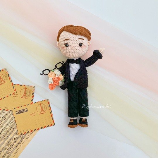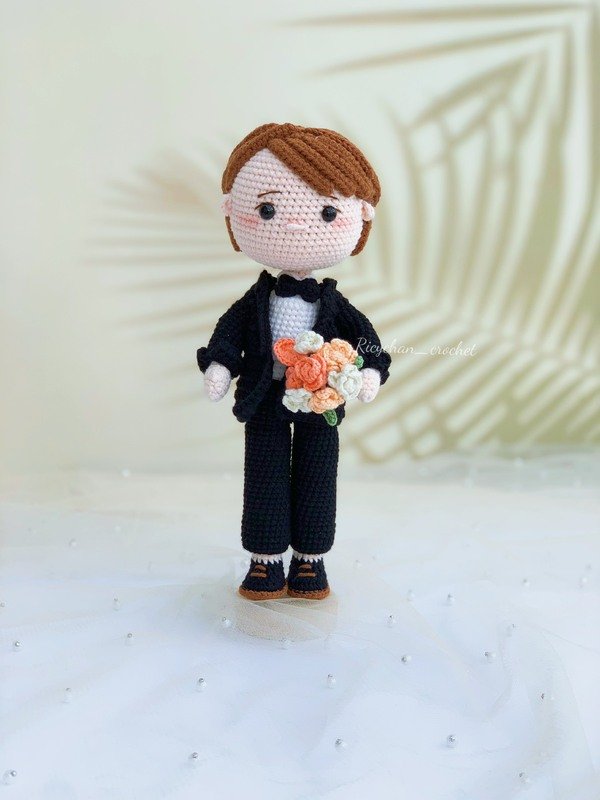 Edric The Groom Doll Crochet Pattern - © 2023 Ricychan - Designed by Tran Phuong Lan. It's for personal use only. Please do not copy, sell, or redistribute this pattern in any way.