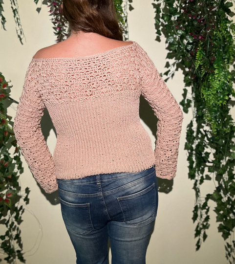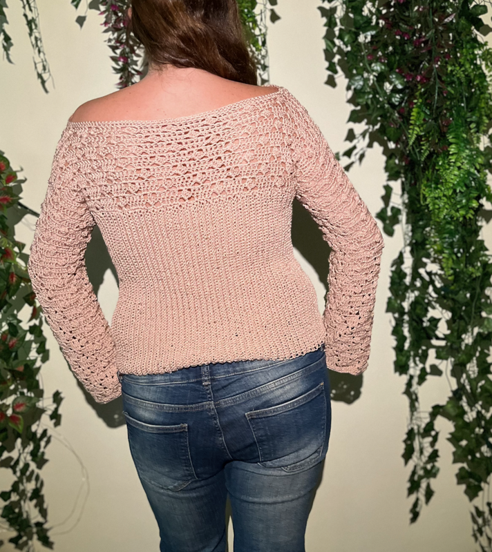 If you have mastered the indicated stitches, the pattern is suitable for beginners. The front and back pieces are crocheted separately but in one piece and then sewn or crocheted together.
