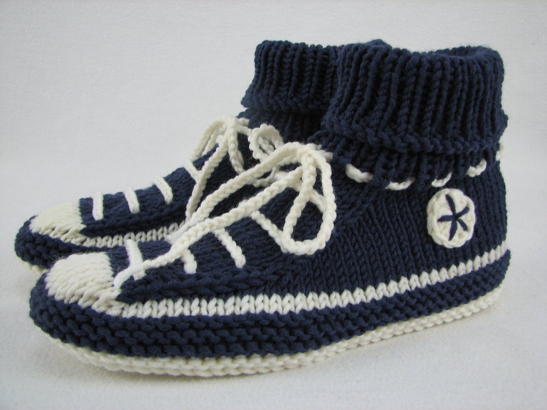 Strickanleitung für tolle Haussocken, Größe 34/35 bis 44/45. Die Anleitung "Mein erster Turnschuh" ist erwachsen geworden.