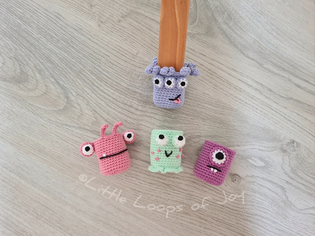 This easy PDF crochet pattern is for a cute and unique set of amigurumi monster chair leg covers. It includes four different designs, each one with many lovely details, yet easy to make. These chair socks don't just protect your floors and let you move your chairs without any noise, but also add an adorable little touch to your home.