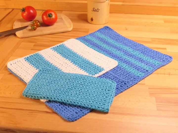 Du suchst ein schnelles Häkelprojekt für den Sommer? Mit einem einfachen Design und einem simplen, klaren Muster gelingen dir im Handumdrehen zeitlose Spül- und Handtücher aus Baumwolle. Die Tücher haben einen lockeren Fall und sind ideal für Küche, Bad oder als kleines Geschenk. Perfekt für Häkelneulinge und alle die entspannt häkeln möchten. Häkle deine Wunschgröße oder spiele mit den Farben, die dir gefallen. Ideal auch zur Resteverwertung.