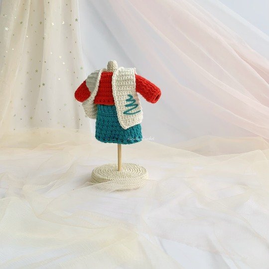 This pattern contains tutorial for 10" doll outfit. You could also use this set to dress your own dolls, when you adjust hook size to fit your doll.