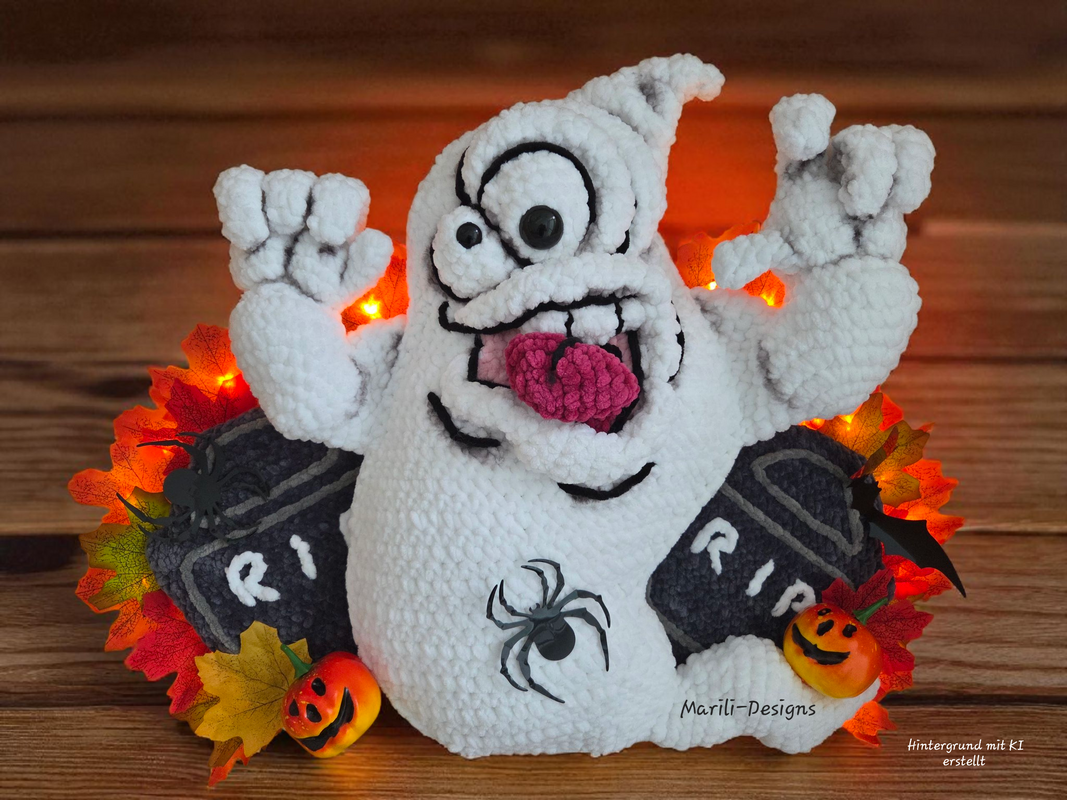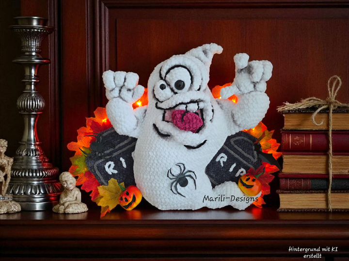 When made with chenille, the ghost is large enough to fill the width of the door. However, if you use cotton or acrylic wool, you can also crochet smaller ghosts. The instructions guide you step by step through the entire project with numerous pictures and lead you to a satisfying result. If you have any questions, please feel free to contact me by email.