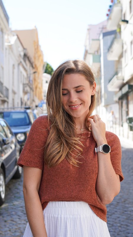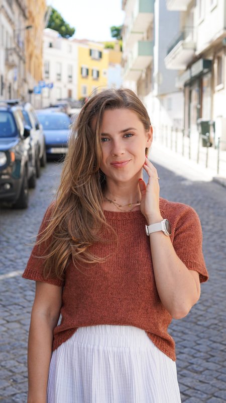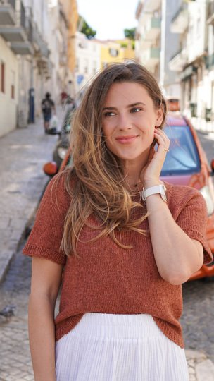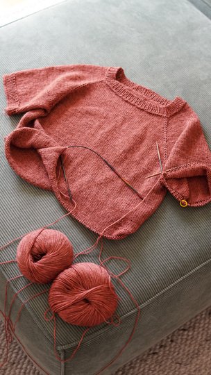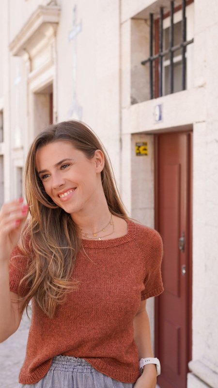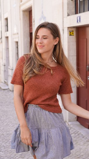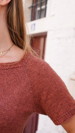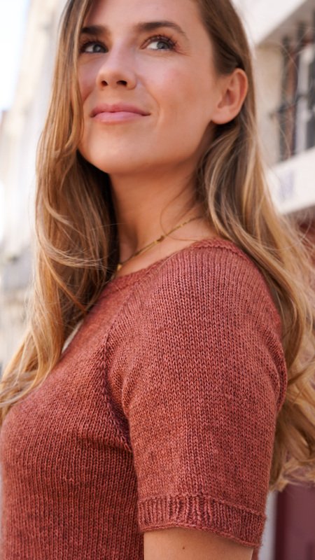 The shirt is knitted seamlessly from the top down. Thanks to the raglan increases and the gradually narrowing sleeves, it fits beautifully. It offers a relaxed and comfortable fit with approximately 5–10 cm of ease, depending on your preference, and looks great in every size – from XS to XXXL.