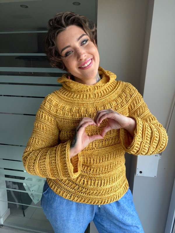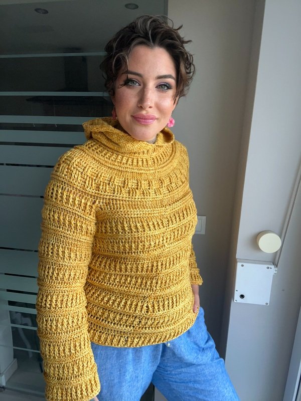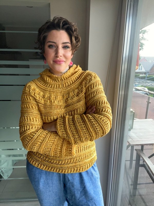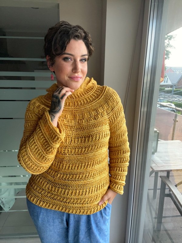 Diese Garnstärke sorgt für ein wunderschönes, gleichmäßiges Maschenbild und einen angenehm tragbaren, leichten Pulli – perfekt für sonnige Tage und kuschelige Abende. ️