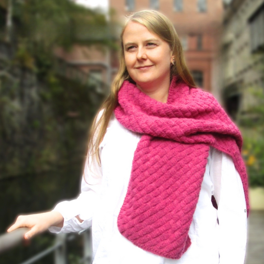 The Baskional Scarf is a great accessory with its interesting diagonal basketweave pattern which looks stunning from both sides.