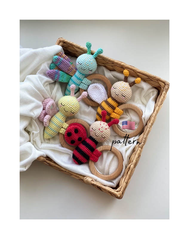Baby teether TOYS: Bee, Ladybug, Butterfly, Dragonfly AMIGURUMI PATTERNS (PDF file).