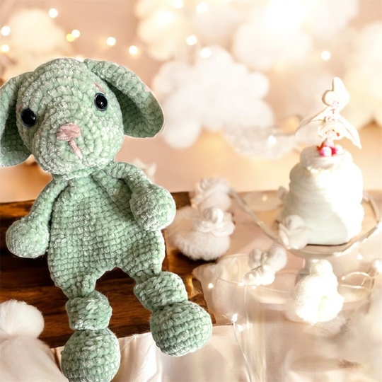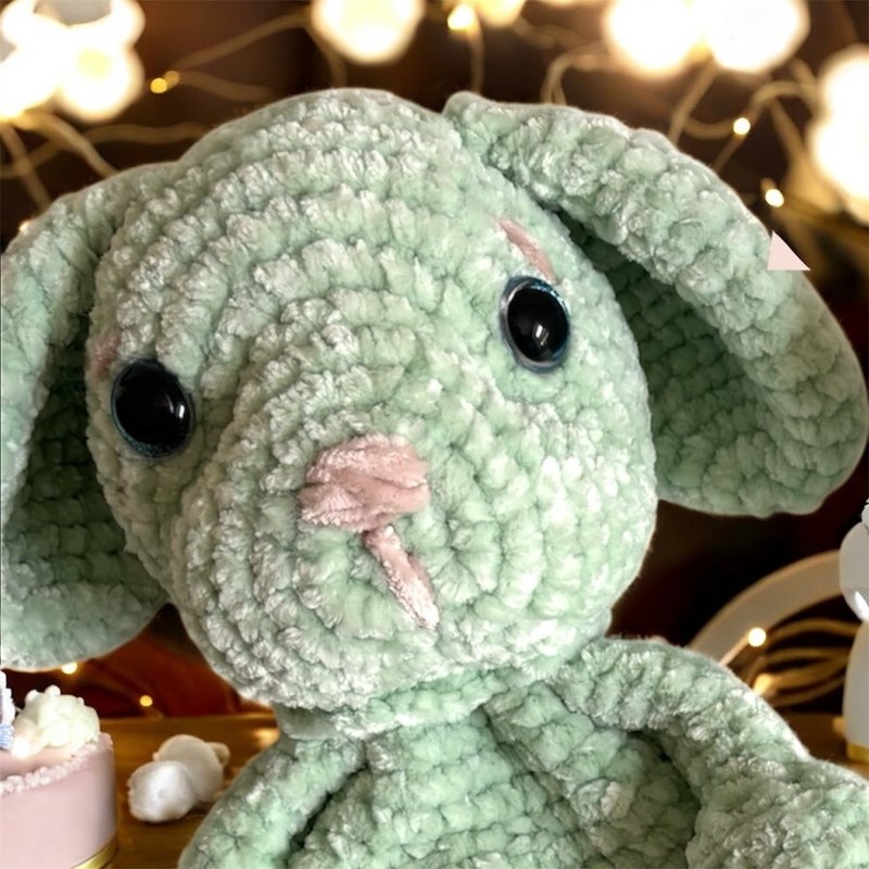 With this lovingly designed crochet pattern, you can make your own super soft cuddle bunny! The bunny is crocheted using fluffy chenille yarn and measures approx. 40 cm (16 inches) – perfect for snuggling, playing, or gifting.