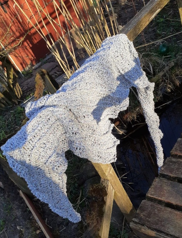 Mein wing ist auch ohne Wiederholung knapp 2,20m lang und schön schmal geworden. Ich kann ihn gut als Schal tragen.