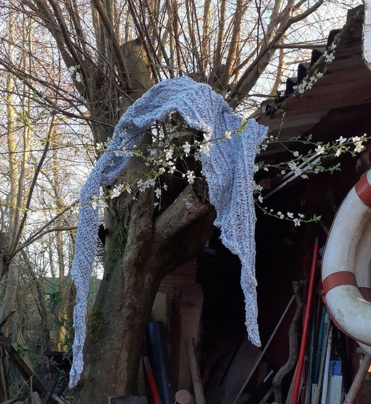 Ein asymmetrisches, liebevoll gestaltetes Schaltuch, das mehr ist als nur ein wärmender Begleiter.